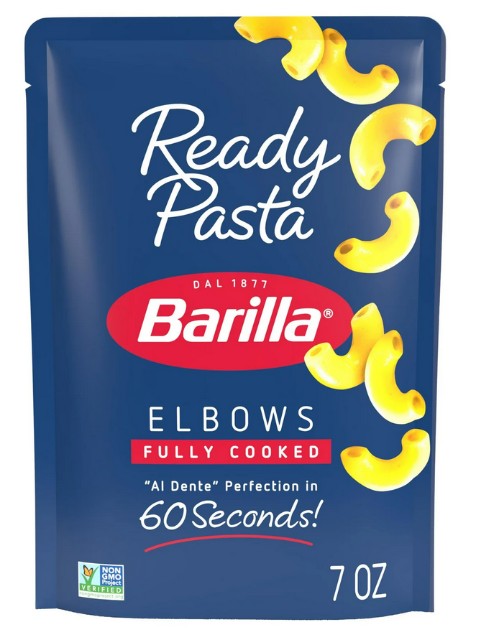 7-ounce pouch of fully cooked elbow pasta made with 3 simple ingredients, a touch of extra virgin olive oil, a dash of sea salt, and Barilla pasta