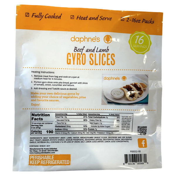 Daphne's Beef and Lamb Gyro Slices, 2- 16 oz Packs (32 oz)