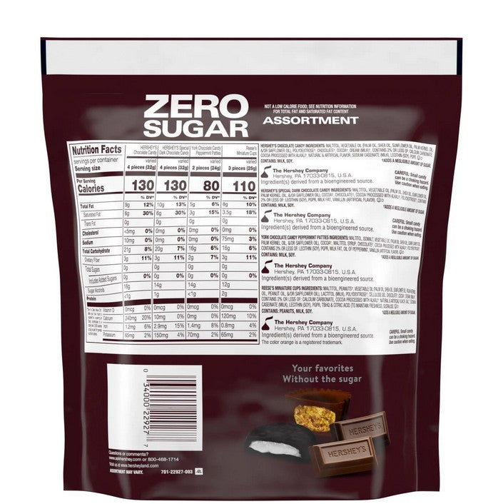 Hershey's, Reese's And York Zero Sugar Assorted Flavored Candy, Variety Bag 15.5 oz