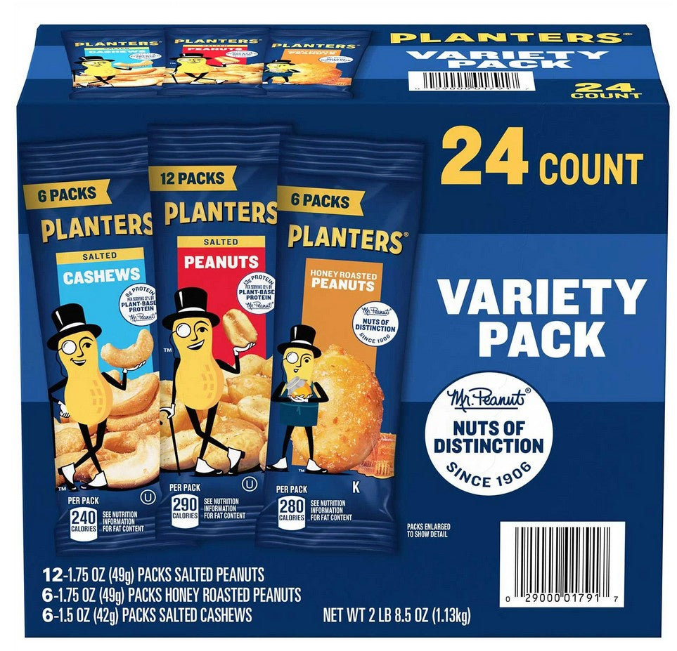 Planters Variety Pack Cashews & Peanuts, 24 pk. 2 lb 8 oz (40 oz)